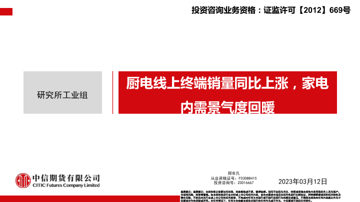 【中信期货】【20230312】厨电线上终端销量同比上涨,家电内需景气度回暖-24页