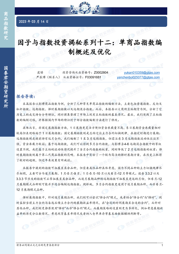 【国泰君安期货】【20230314】因子与指数投资揭秘系列十二:单商品指数编制概述及优化-23页