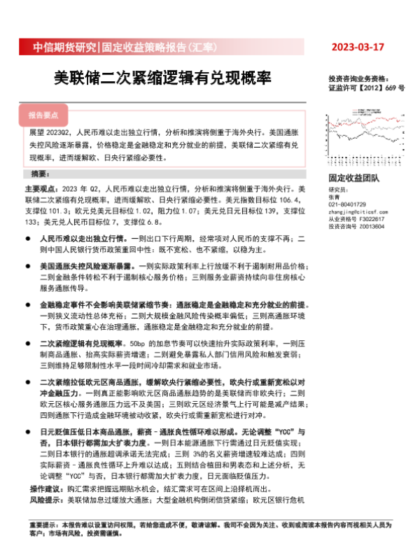 【中信期货】【20230317】固定收益策略报告(汇率):美联储二次紧缩逻辑有兑现概率-41页