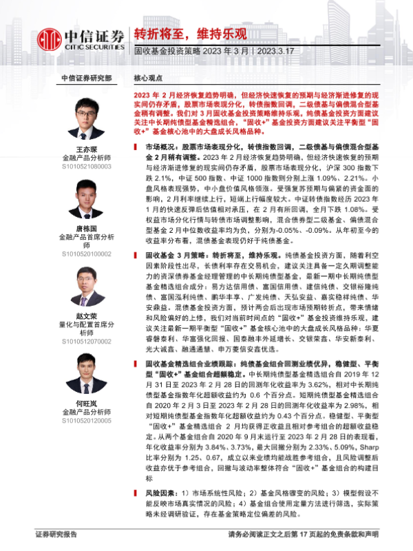 【中信证券】【20230317】固收基金投资策略2023年3月:转折将至,维持乐观-18页