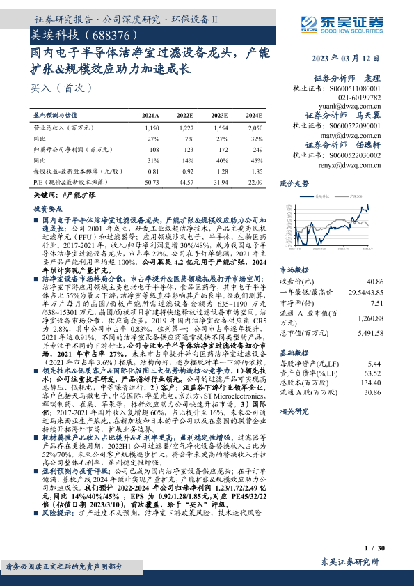 【东吴证券】【20230312】国内电子半导体洁净室过滤设备龙头,产能扩张&规模效应助力加速成长-30页