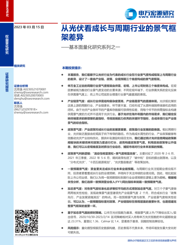 光伏行业 成长与周期 政策影响 景气框架 量化研究