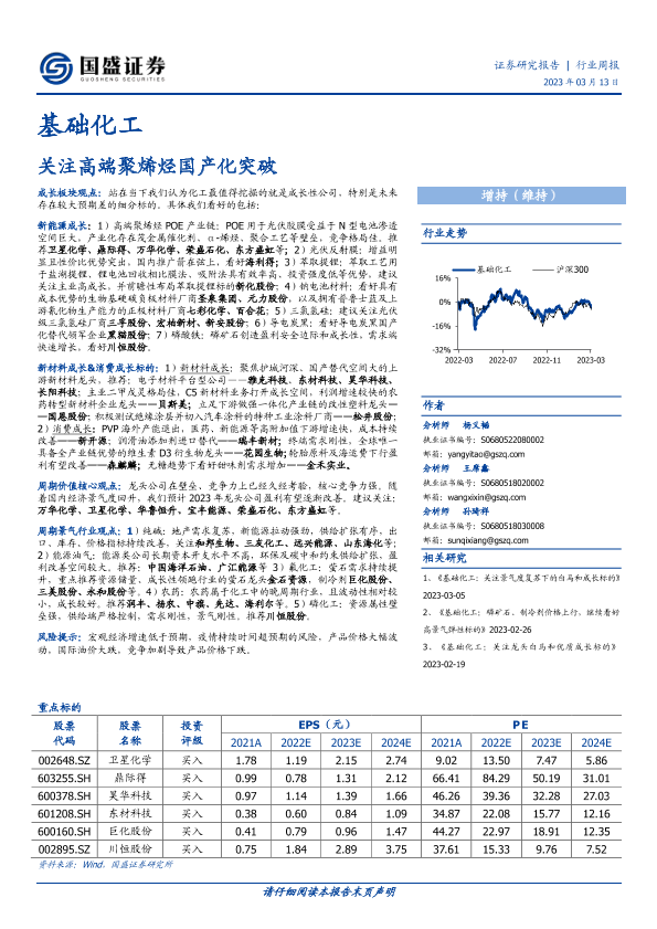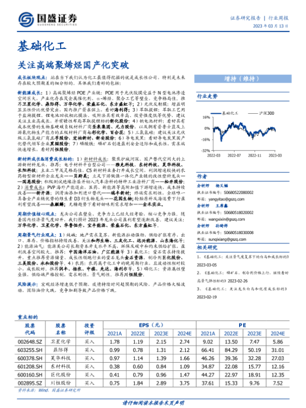 【国盛证券】【20230313】基础化工行业周报:关注高端聚烯烃国产化突破-22页