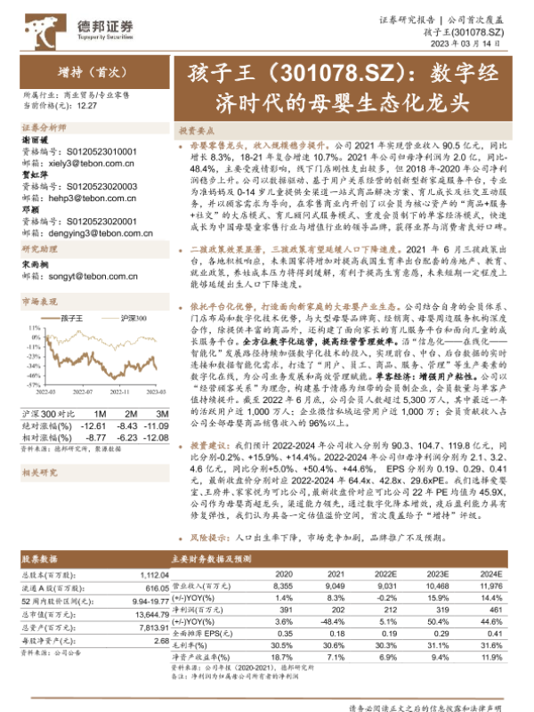 【德邦证券】【20230314】孩子王(301078)数字经济时代的母婴生态化龙头-24页
