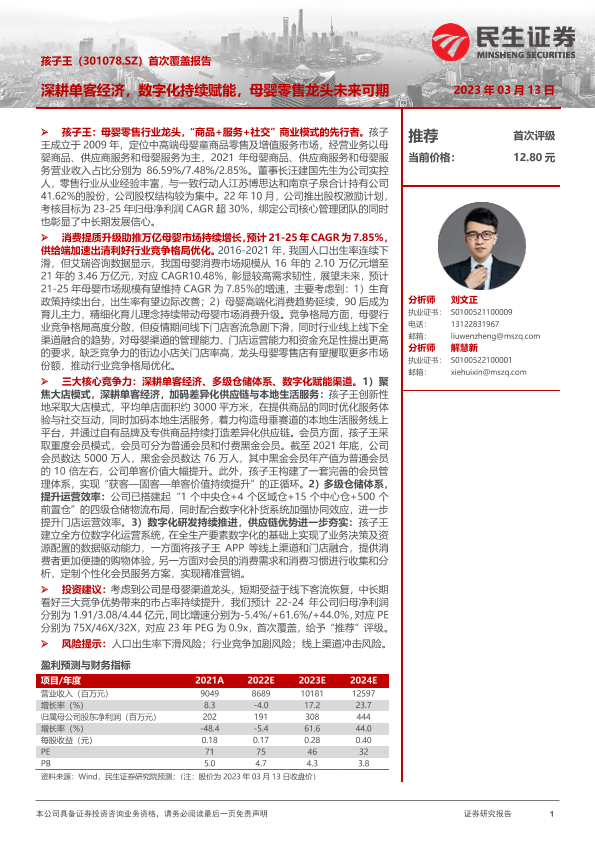 【民生证券】【20230313】孩子王首次覆盖报告:深耕单客经济,数字化持续赋能,母婴零售龙头未来可期-49页