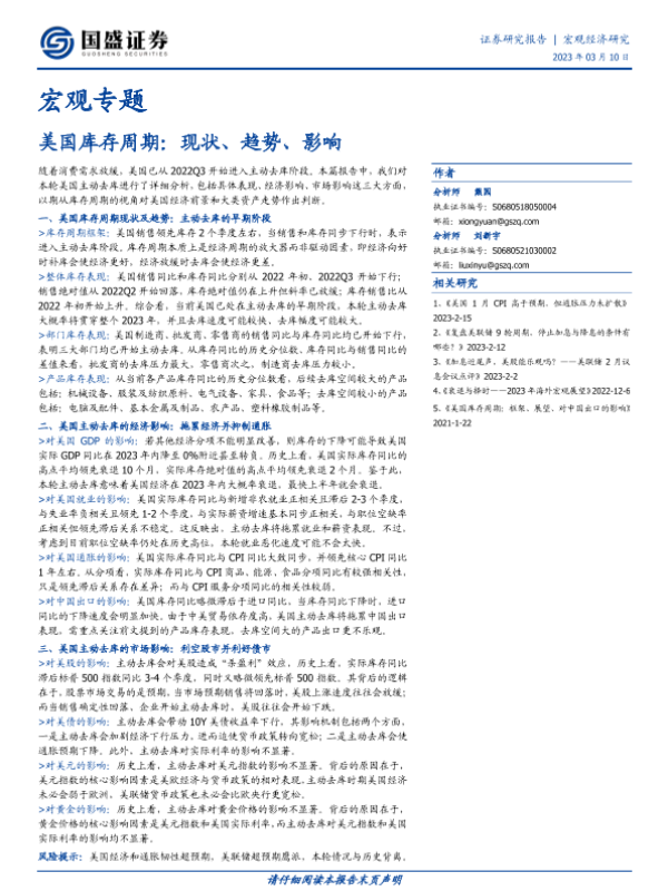 【国盛证券】【20230310】宏观专题:美国库存周期,现状、趋势、影响-16页