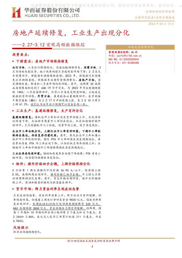 【华西证券】【20230313】宏观高频数据跟踪:房地产延续修复,工业生产出现分化-17页