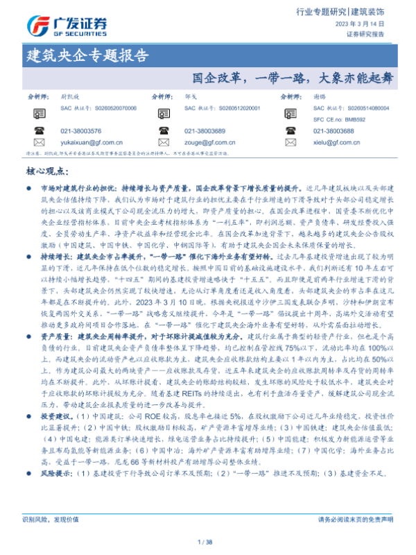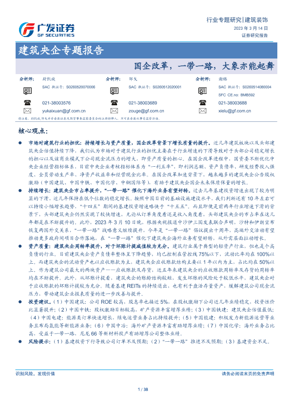 【广发证券】【20230314】建筑央企专题报告:国企改革,一带一路,大象亦能起舞-38页