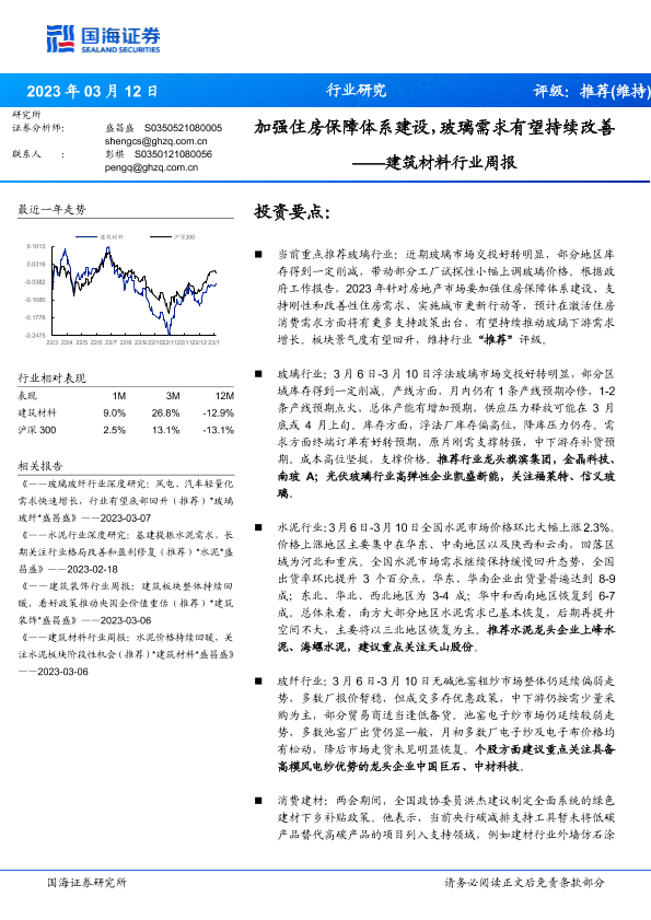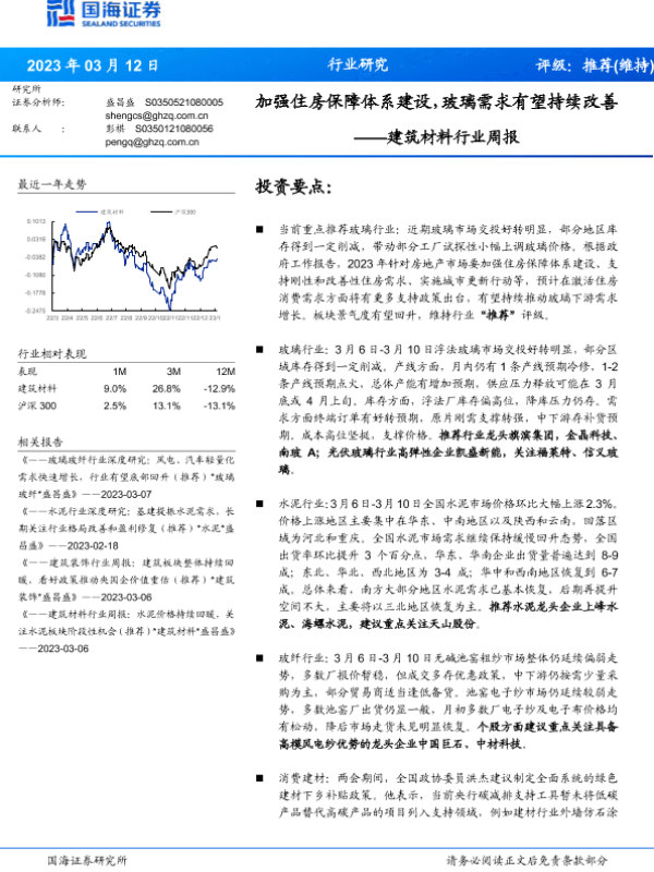 【国海证券】【20230312】建筑材料行业周报:加强住房保障体系建设,玻璃需求有望持续改善-20页