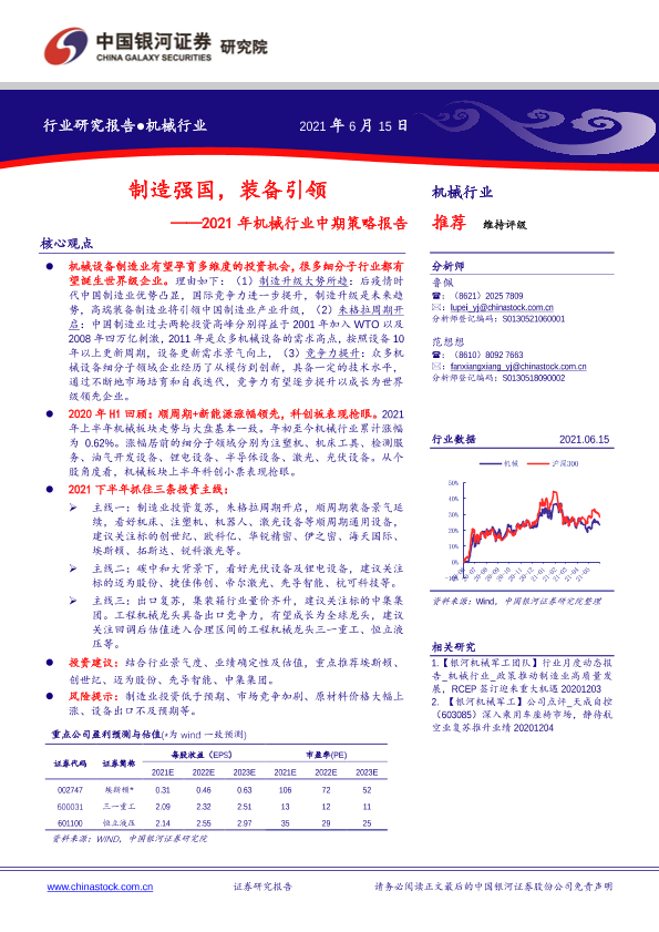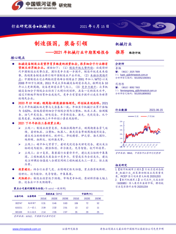 【银河证券】【20210615】2021年机械行业中期策略报告:制造强国,装备引领-21页