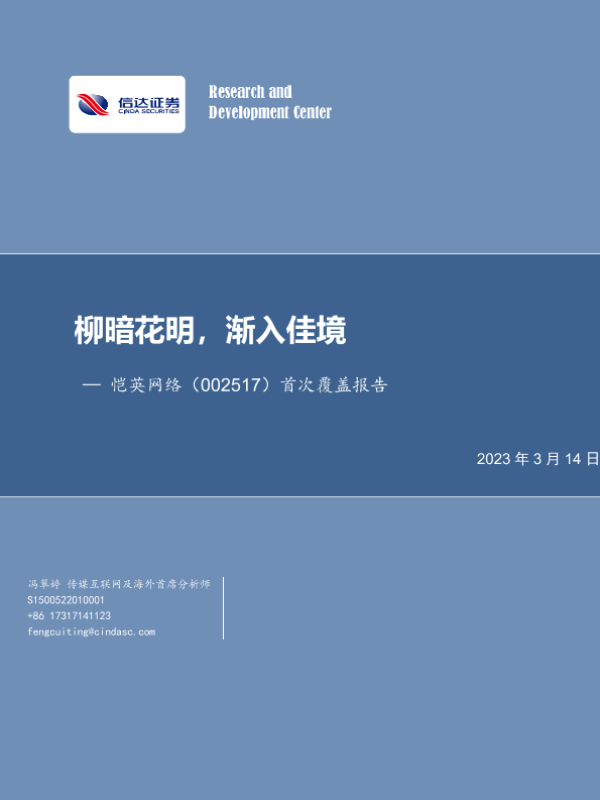 【信达证券】【20230314】恺英网络:柳暗花明,渐入佳境-22页