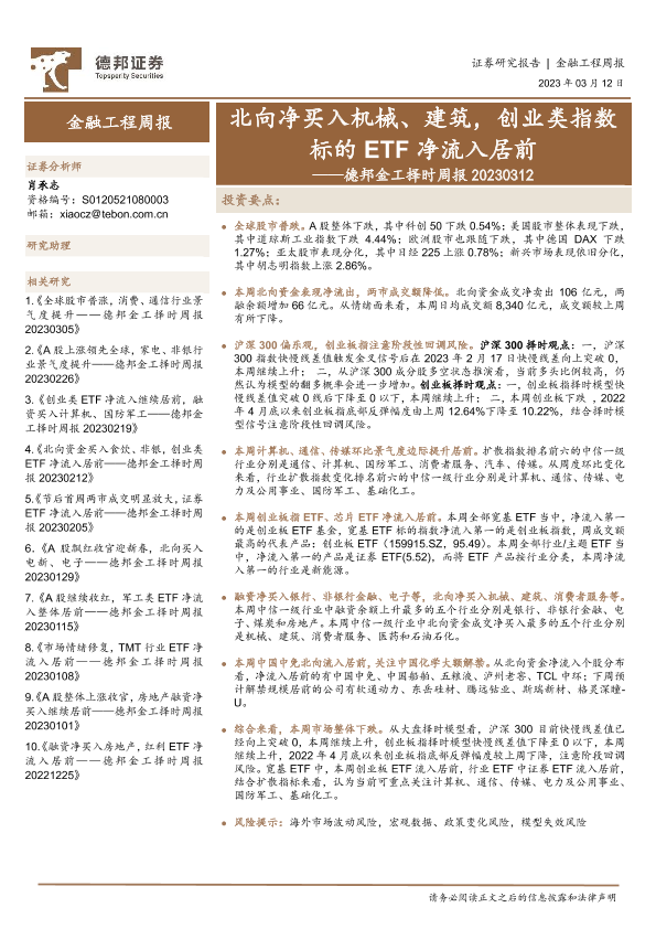 【德邦证券】【20230312】德邦金工择时周报:北向净买入机械、建筑,创业类指数标的ETF净流入居前-28页