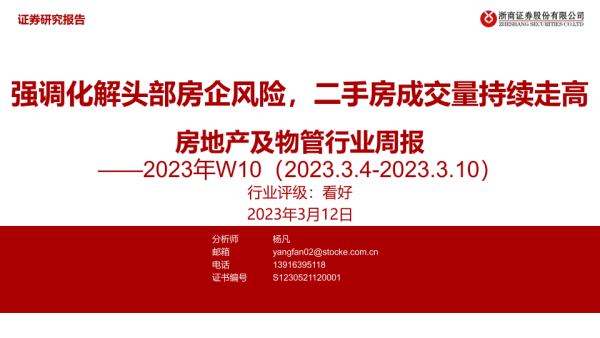 【浙商证券】【20230312】房地产及物管行业周报2023年W10:强调化解头部房企风险,二手房成交量持续走高-28页