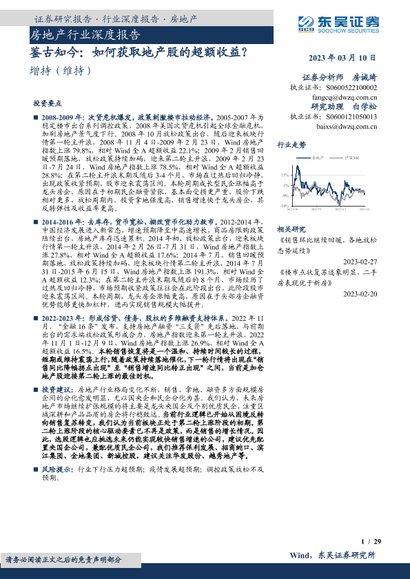 【东吴证券】【20230310】房地产行业深度报告:鉴古知今:如何获取地产股的超额收益?-29页