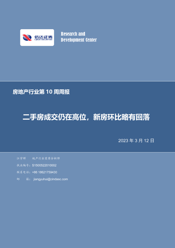 【信达证券】【20230312】房地产行业第10周周报:二手房成交仍在高位,新房环比略有回落-21页