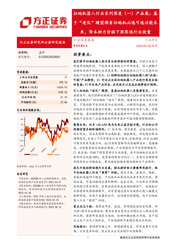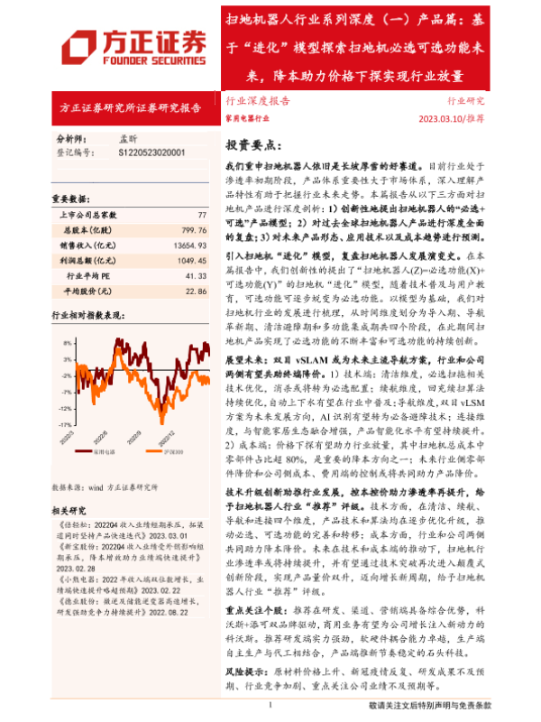 【方正证券】【20230310】扫地机器人行业系列深度(一)产品篇:基于“进化”模型探索扫地机必选可选功能未来,降本助力价格下探实现行业放量-32页