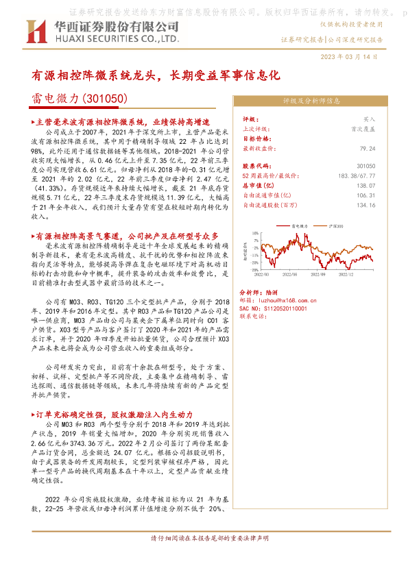 【华西证券】【20230314】有源相控阵微系统龙头,长期受益军事信息化-22页