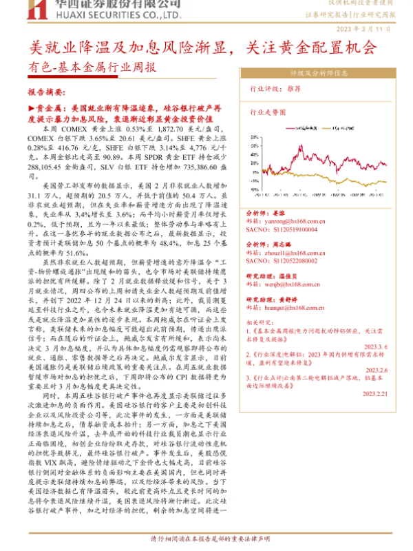 【华西证券】【20230311】有色-基本金属行业周报:美就业降温及加息风险渐显,关注黄金配置机会-25页