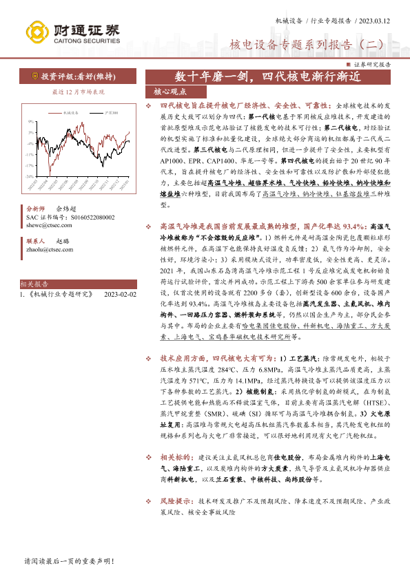 【财通证券】【20230312】机械设备行业专题报告:核电设备专题报告(二),数十年磨一剑,四代核电渐行渐近-22页