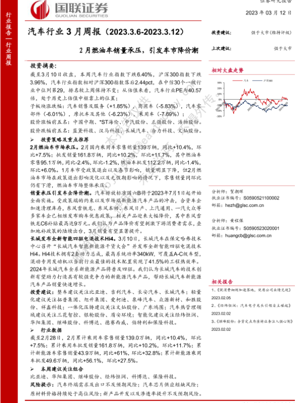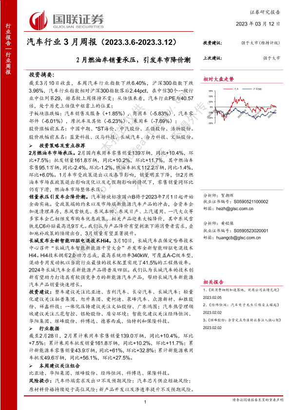 【国联证券】【20230312】汽车行业3月周报:2月燃油车销量承压,引发车市降价潮-20页