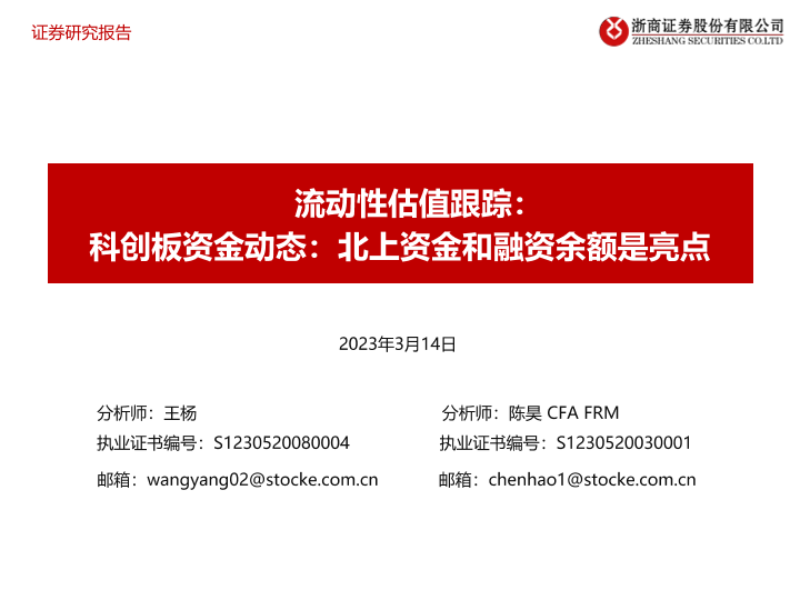 【浙商证券】【20230314】流动性估值跟踪:科创板资金动态:北上资金和融资余额是亮点-46页