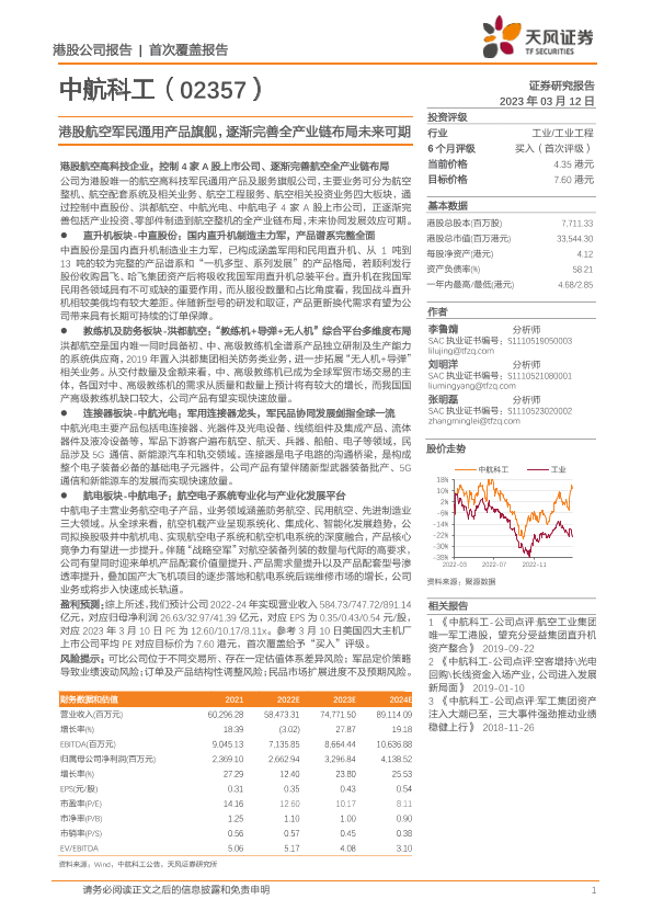 【天风证券】【20230312】港股航空军民通用产品旗舰,逐渐完善全产业链布局未来可期-22页