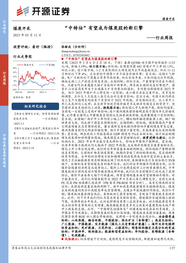 【开源证券】【20230312】煤炭开采行业周报:“中特估”有望成为煤炭股的新引擎-27页