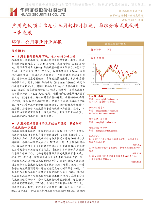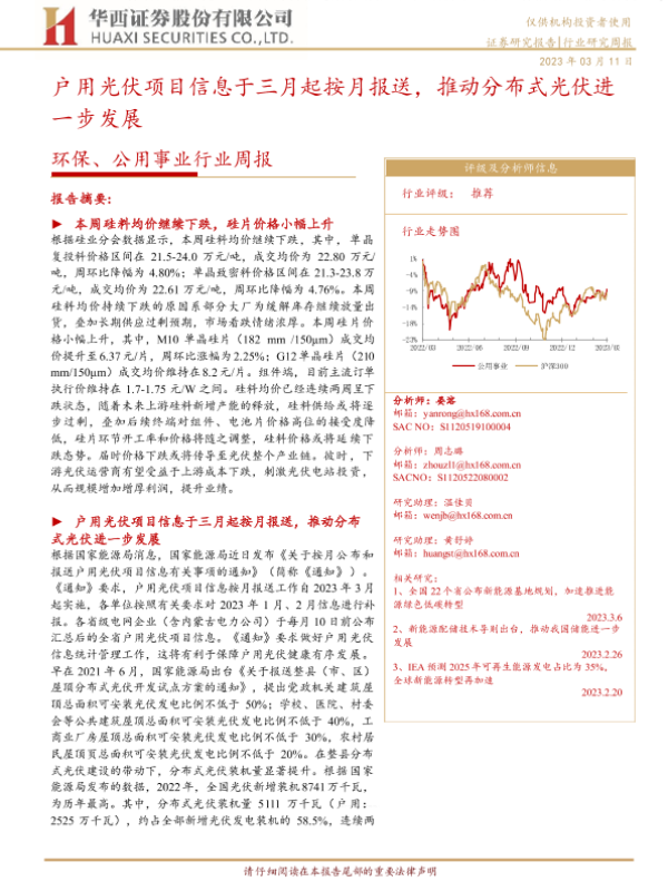 【华西证券】【20230311】环保、公用事业行业周报:户用光伏项目信息于三月起按月报送,推动分布式光伏进一步发展-20页