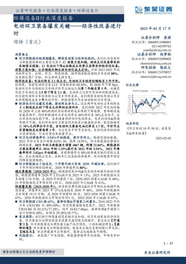 【东吴证券】【20230317】环保设备Ⅱ行业深度报告:电动环卫装备爆发关键——经济性改善进行时-17页