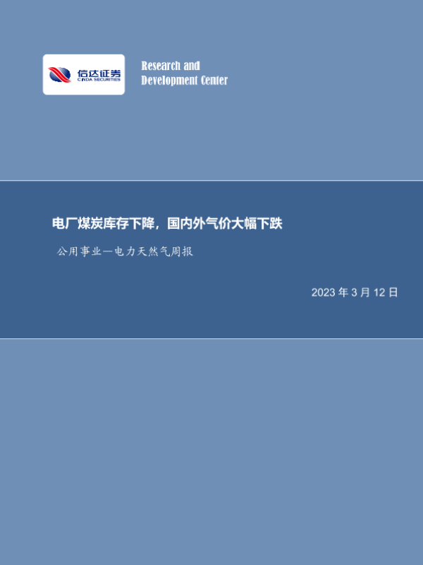 【信达证券】【20230312】电力天然气周报:电厂煤炭库存下降,国内外气价大幅下跌-21页