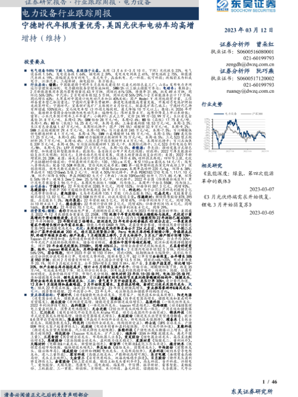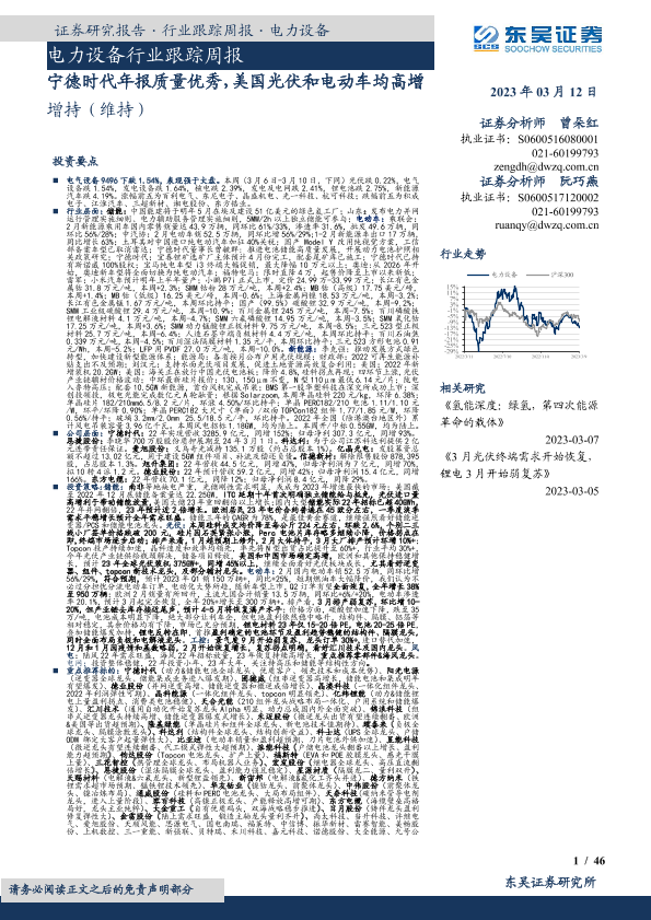 【东吴证券】【20230312】电力设备行业跟踪周报:宁德时代年报质量优秀,美国光伏和电动车均高增-46页