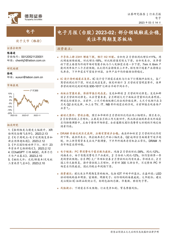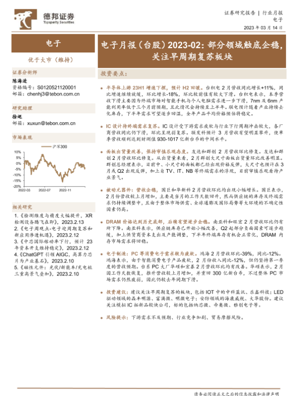 【德邦证券】【20230314】电子月报(台股)2023-02:部分领域触底企稳,关注早周期复苏板块-15页
