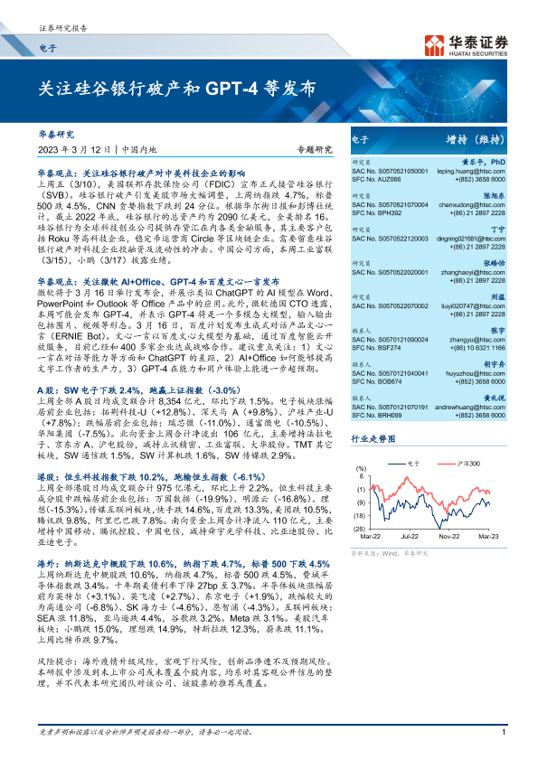 【华泰证券】【20230312】电子行业专题研究:关注硅谷银行破产和GPT_4等发布-26页