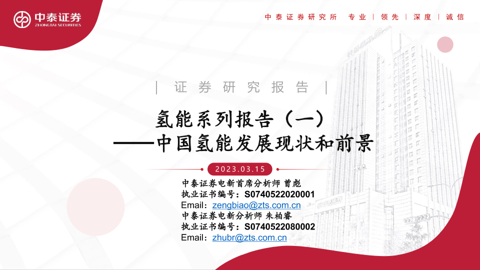 【中泰证券】【20230315】电新行业氢能系列报告(一):中国氢能发展现状和前景-36页