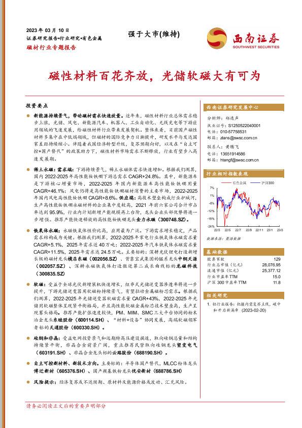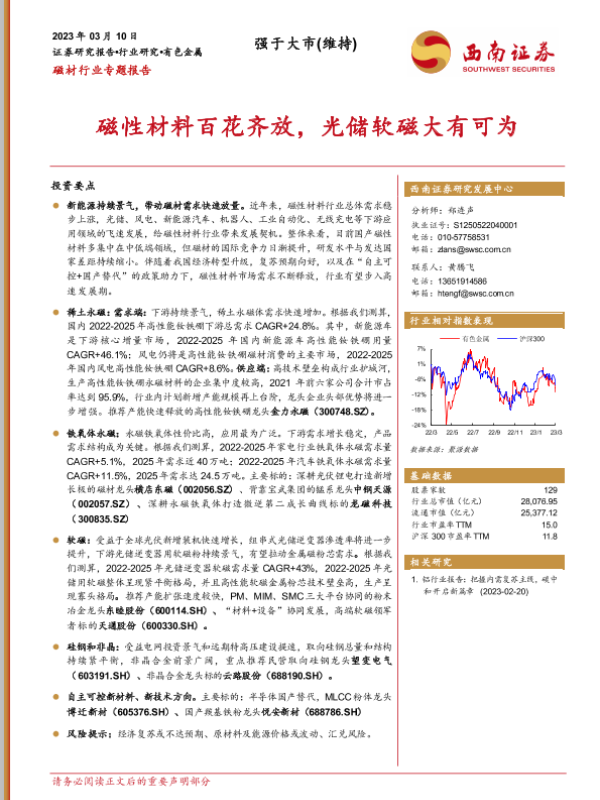 【西南证券】【20230310】磁材行业专题报告:磁性材料百花齐放,光储软磁大有可为-42页