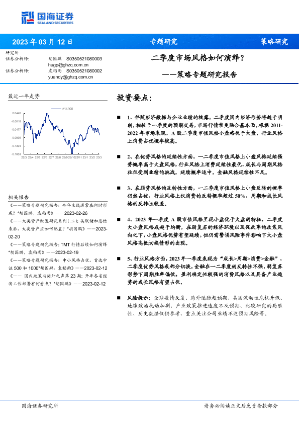 【国海证券】【20230312】策略专题研究报告:二季度市场风格如何演绎?-15页