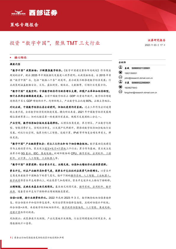 【西部证券】【20230317】策略专题报告:投资“数字中国”,聚焦TMT三大行业-20页