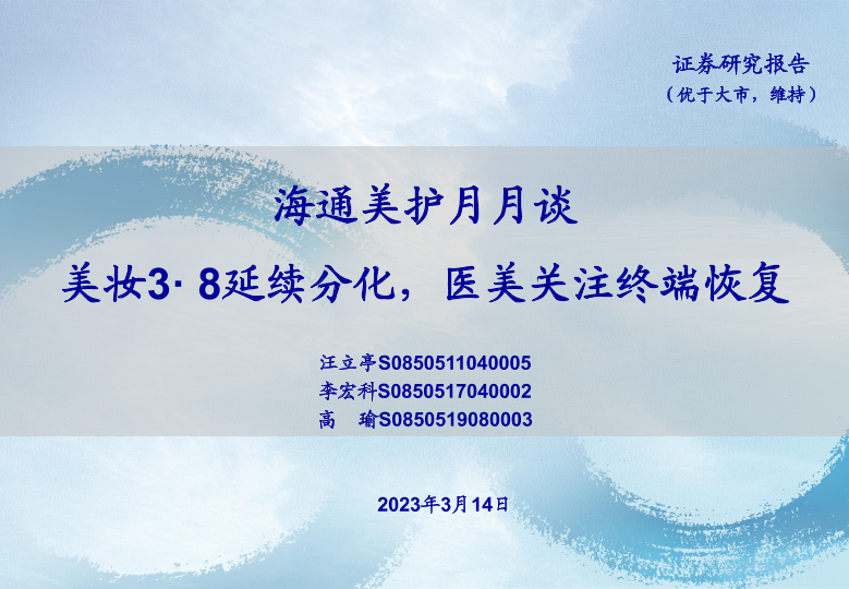 【海通证券】【20230314】美护行业月月谈:美妆3·8延续分化,医美关注终端恢复-28页