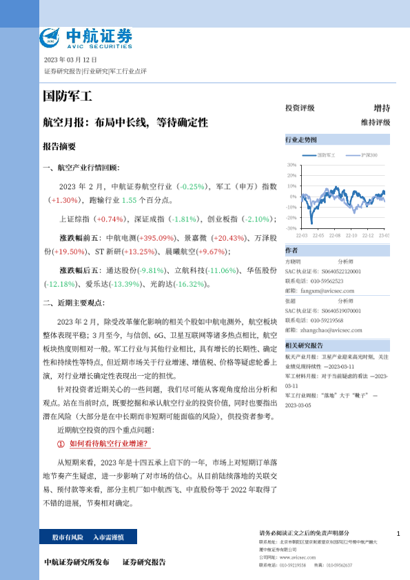 【中航证券】【20230312】航空月报:布局中长线,等待确定性-17页
