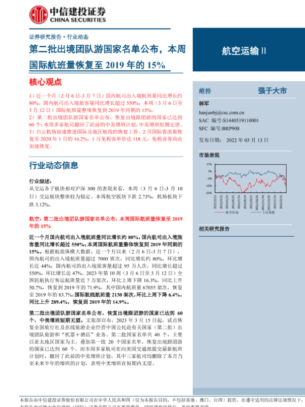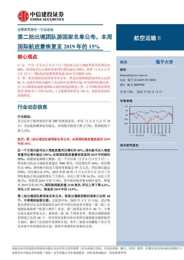【中信建投证券】【20230313】航空运输行业动态:第二批出境团队游国家名单公布,本周国际航班量恢复至2019年的15%-25页