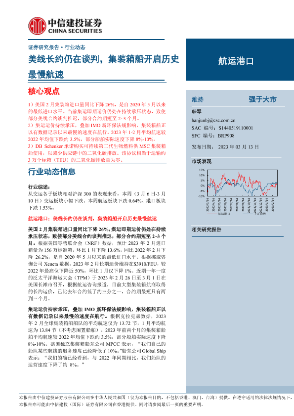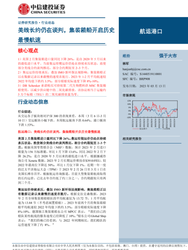 【中信建投证券】【20230313】航运港口行业动态:美线长约仍在谈判,集装箱船开启历史最慢航速-25页