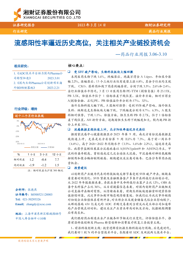 【湘财证券】【20230314】药品行业周报:流感阳性率逼近历史高位,关注相关产业链投资机会-15页