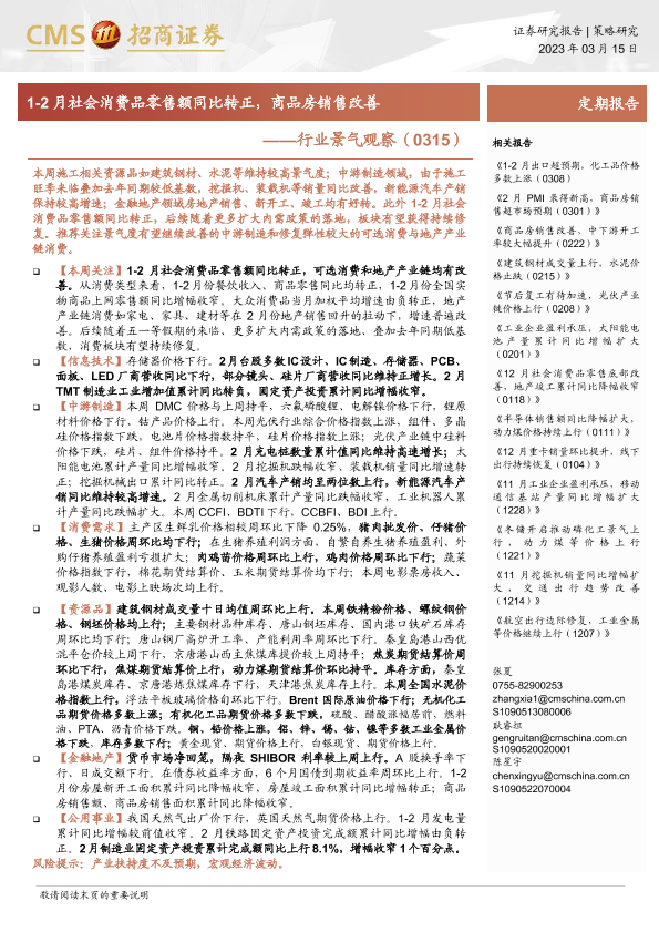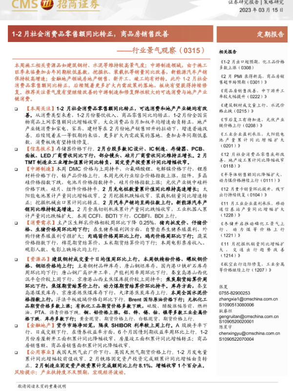 【海通证券】【20230315】行业景气观察:1-2月社会消费品零售额同比转正,商品房销售改善-31页