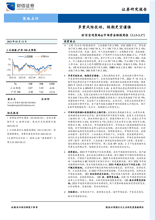 【财信证券】【20230312】财信宏观策略&市场资金跟踪周报:多重风险扰动,短期更宜谨慎-18页