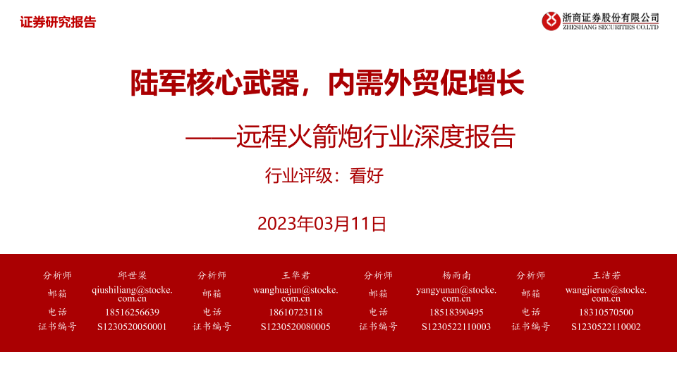 【浙商证券】【20230311】远程火箭炮行业深度报告:陆军核心武器,内需外贸促增长-36页