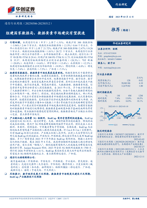【华创证券】【20230312】通信行业周报:组建国家数据局,数据要素市场建设有望提速-15页