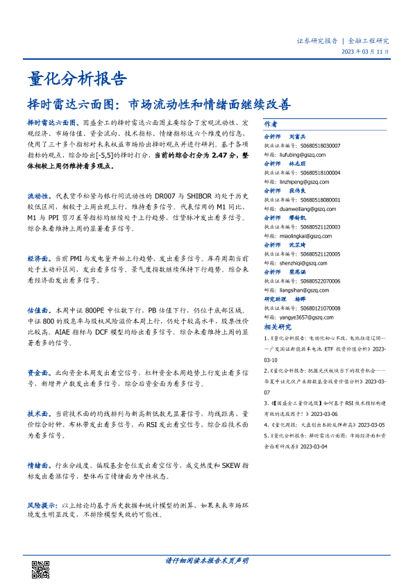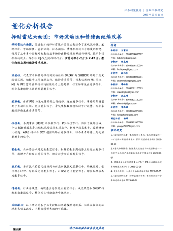【国盛证券】【20230311】量化分析报告:择时雷达六面图,市场流动性和情绪面继续改善-23页