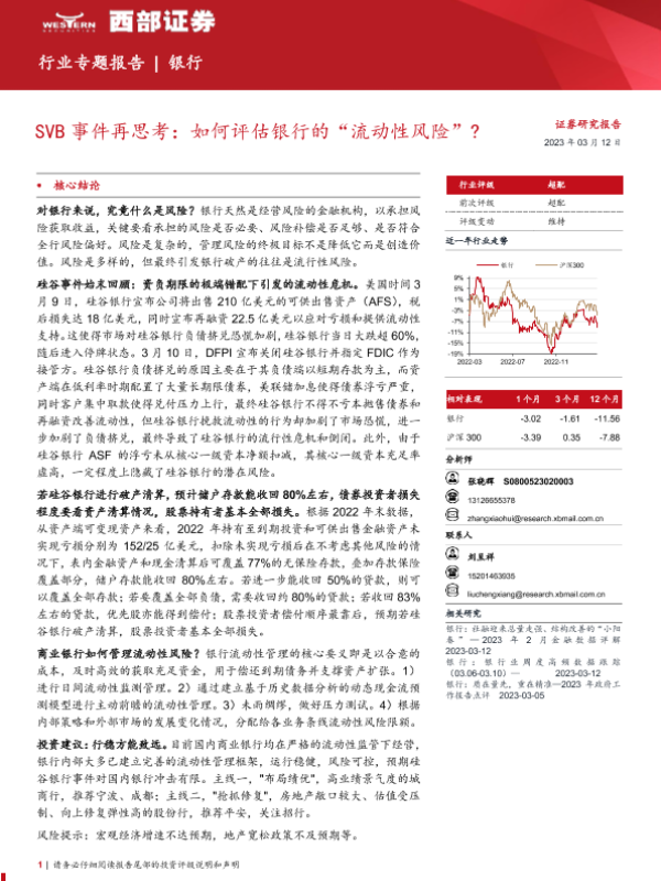 投资分析 流动性风险 硅谷银行 金融监管 银行业