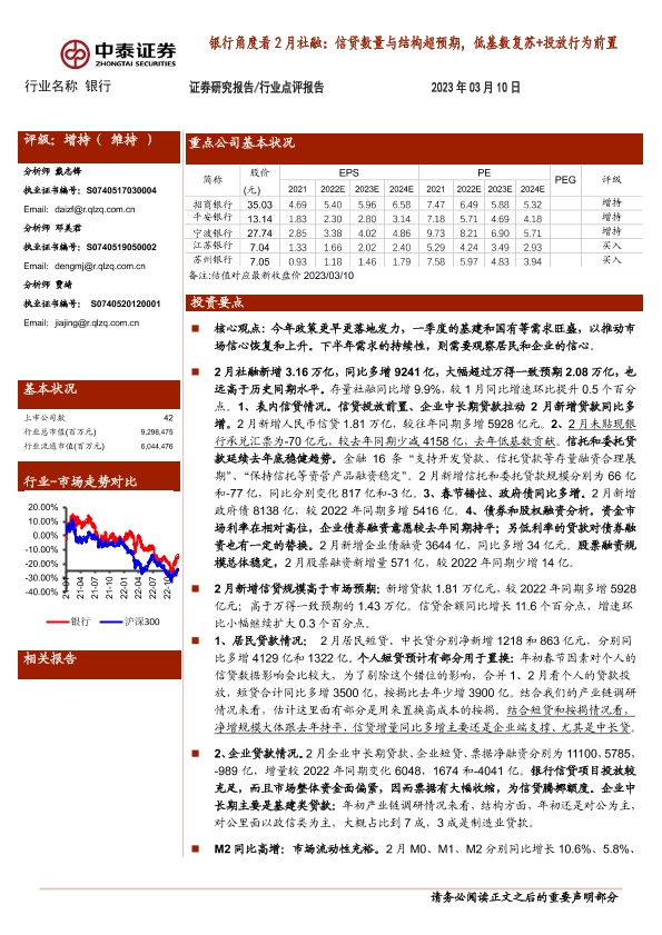 【中泰证券】【20230310】银行业银行角度看2月社融:信贷数量与结构超预期,低基数复苏+投放行为前置-15页