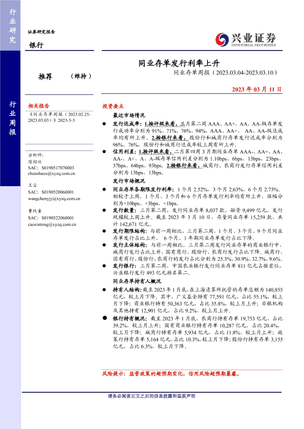 【兴业证券】【20230311】同业存单周报(2023.03.04-2023.03.10)-15页